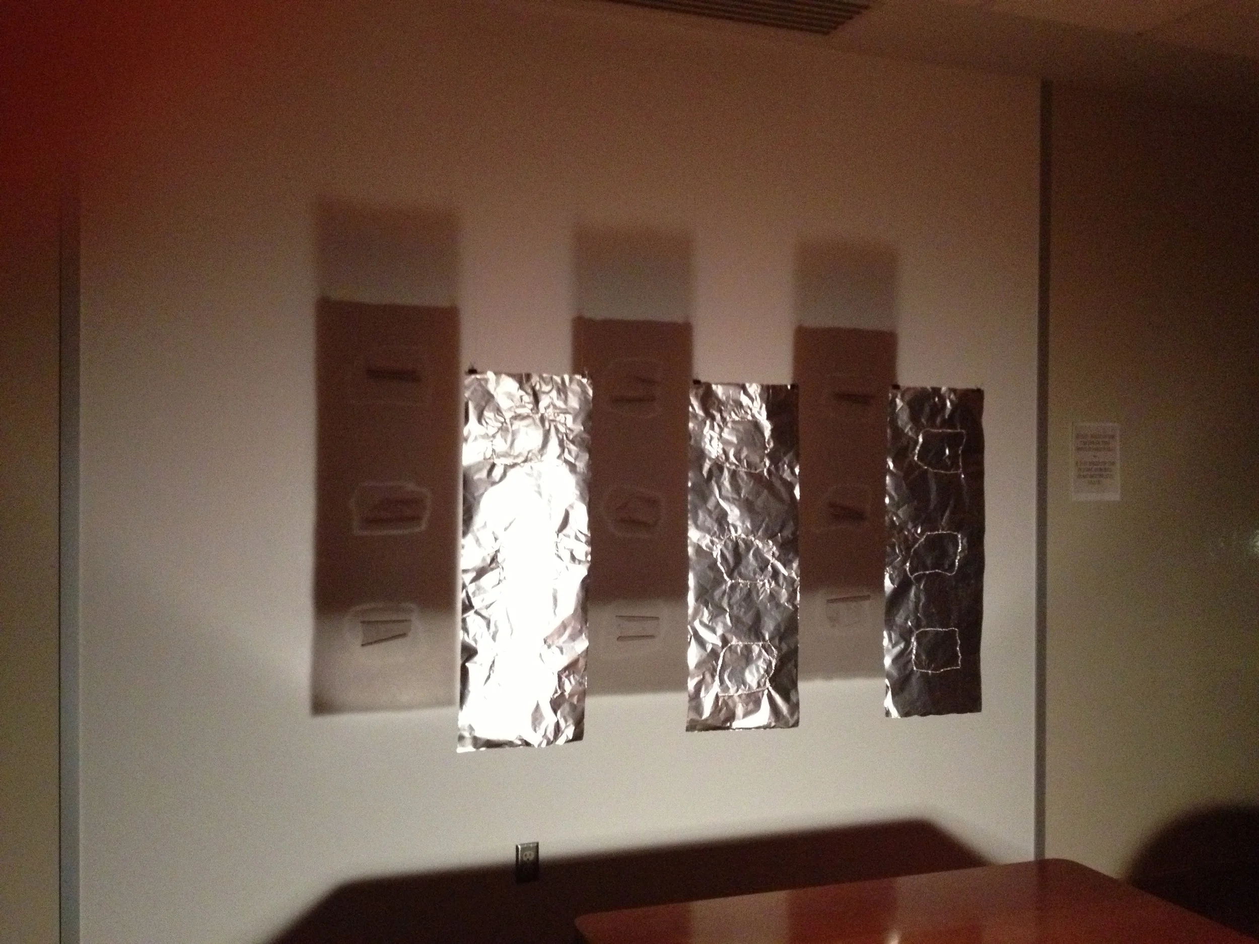 We all carry a perspective, an outlook that defines our immediate reality. Interposing two perspectives, this piece invites viewers to consider the overlap of differing viewpoints, and moreover, the limitation of a single perspective. Approaching the installation, you will discover text written on the back side of the aluminium panels – a sight hidden to outside viewers. Yet, only from the outside can viewers notice the reflections of light dancing upon the “inside” viewer.